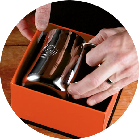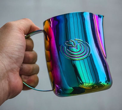 The EVO 2.0 is the first and only curved pitcher designed to make latte art more intuitive. It features a curved body for the ideal pouring angle, a razor-sharp spout for intricate designs, and a round, symmetrical handle for perfect control. The electroplated color won’t peel, and the laser-welded handle attachment comes with a lifetime guarantee for durability.