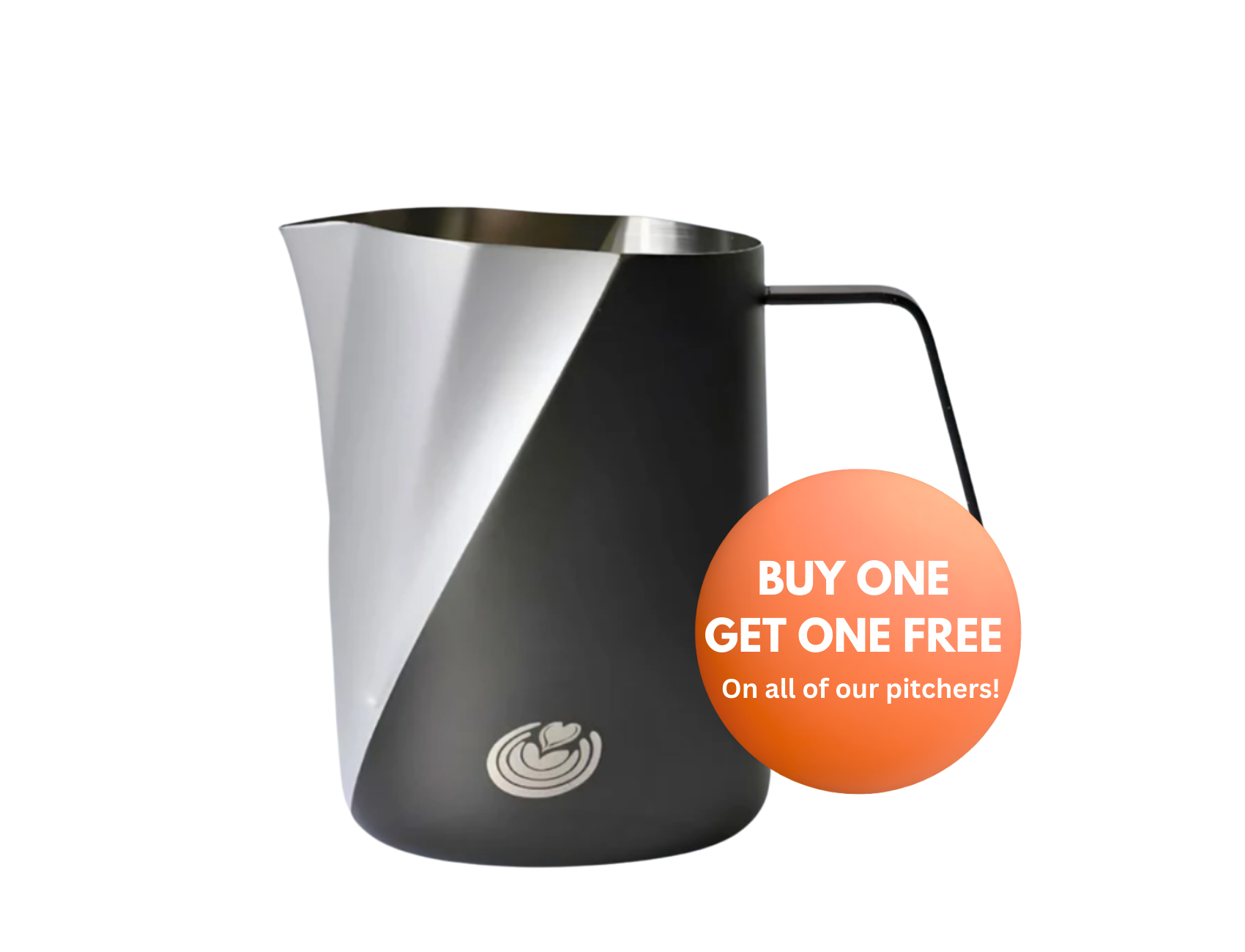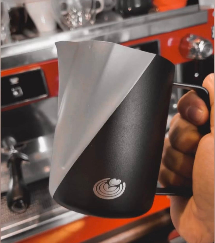 Unlike standard pitchers that rely heavily on technique, the Vortex is more forgiving, making it easier to achieve great results even on home or low-pressure machines. It features a balanced, ergonomic handle for control, a hybrid spout that’s sharp enough for clean pours without being difficult, and a fully laser-welded handle attachment backed by a lifetime guarantee for long-term durability.